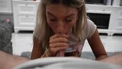 Watch how hot college blonde Ambie Bambii gives a massive facial in POV during the New Year