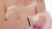 Teen soaps up tits in shower, finishes on floor